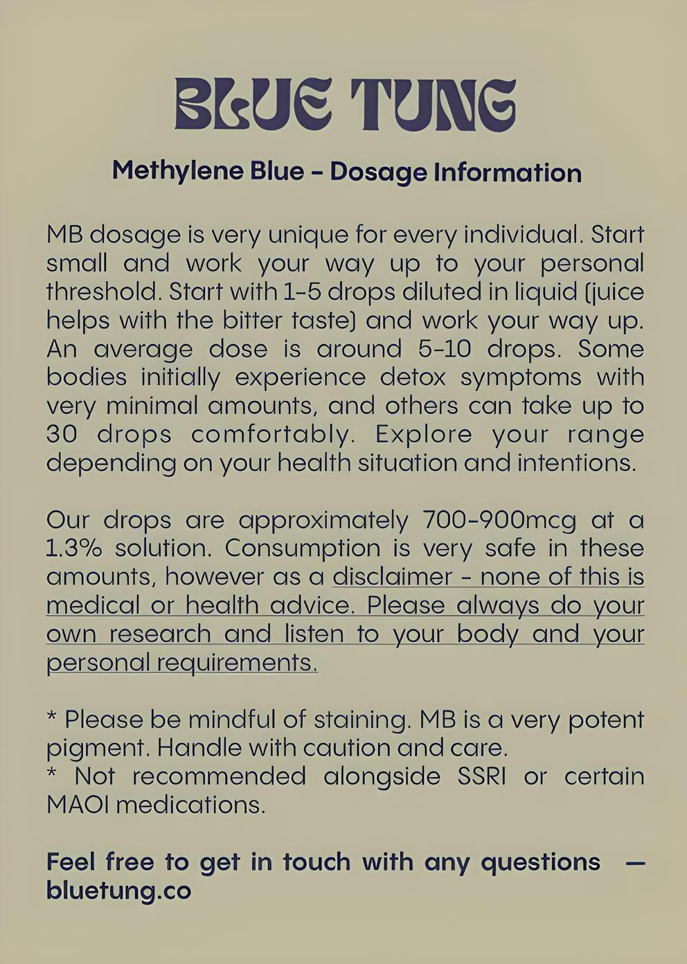 Blue Tung Liquid Methylene Blue offers a pure, research-grade 1.3 percent solution crafted in Australia. It delivers consistent micro-doses of methylene blue that are designed for flexible use in health-focused routines.