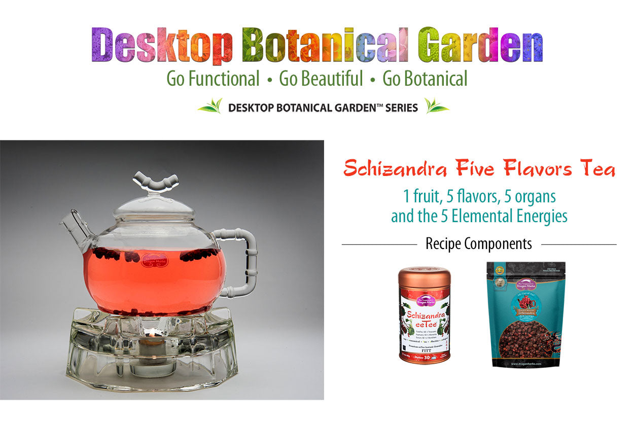 In your Desktop Botanical Garden Glass Tea & Elixir Maker, add 1 part Schizandra and 5-8 parts water, steep or decoct for 5-20 minutes. Boil water directly in the Elixir Maker. Repeat the extraction process until all active constituents are extracted.