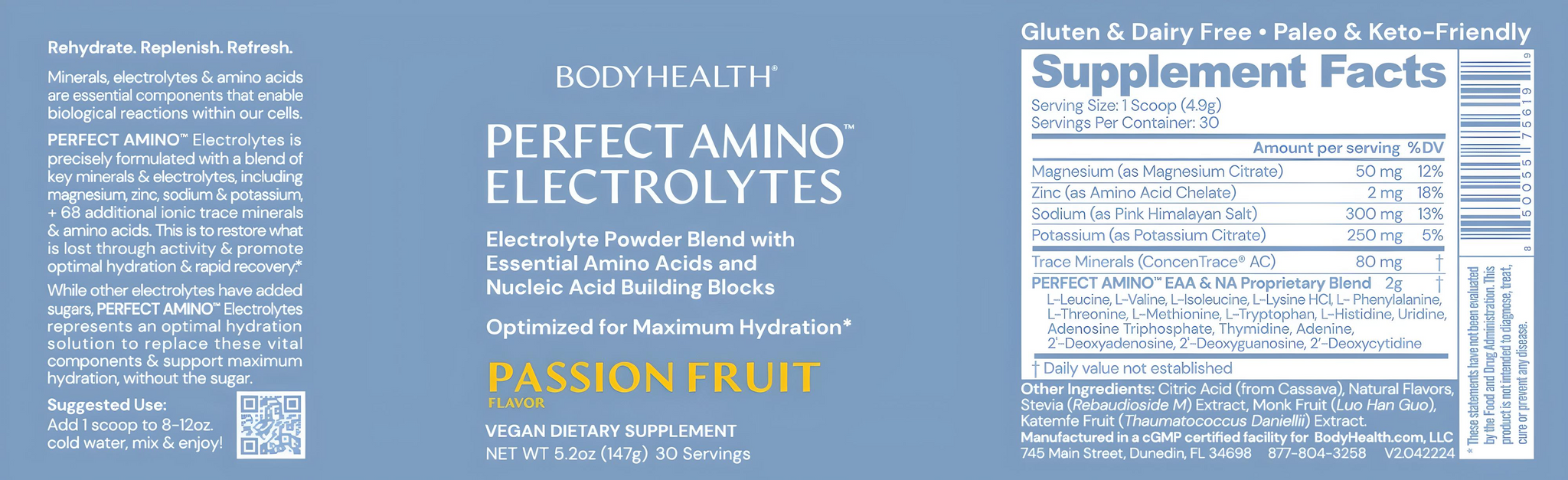 Body Health Perfect Amino Electrolytes Passionfruit 30 Servings