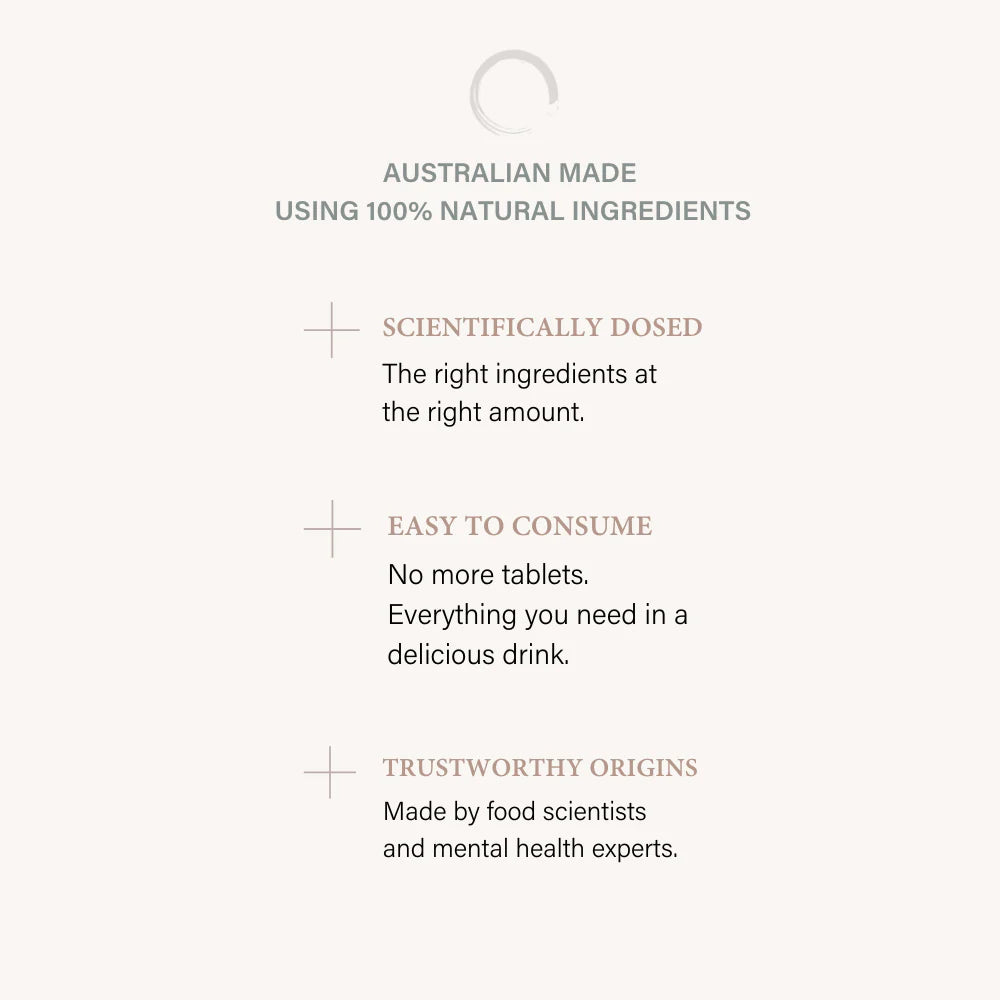 Experience tranquillity in every sip with Calm+, a health supplement powder designed to dissolve in water. It offers not just a delicious taste but a plethora of natural benefits aimed at enhancing your sense of calm and reducing stress and anxiety.