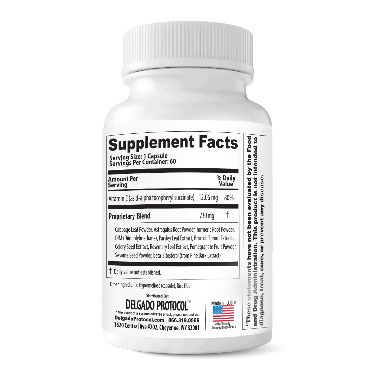Cabbage powder, Astragalus Root, Turmeric Root, DIM, Parsley Extract, Broccoli sprouts Extract, Celery Extract, Rosemary Extract, Pomegranate, Sesame Seed, and Beta-sitosterol sourced from non-soy pine sources, ensuring a soy-free formulation.