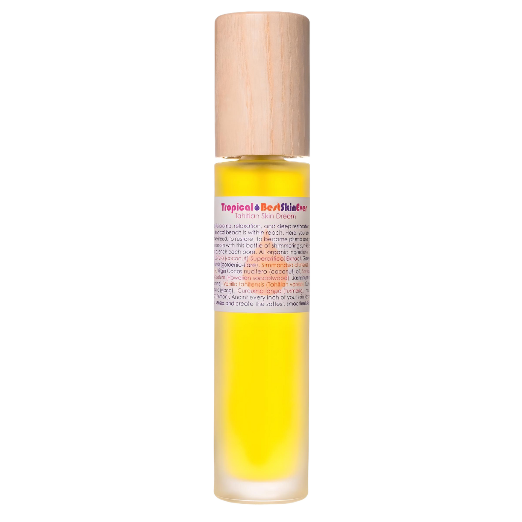 Living Libations Tropical Best Skin Ever is a luscious Tahitian love-dream. The joyful aroma of being on a tropical beach is within reach. Experience the freedom, relaxation, and deep restoration of a sandy saunter on a tropical island, where the salty sea and shimmering sun kiss pure-plant infusions of exotic merriment. It is here that your skin is freed to take heed, to restore, to become plump and playful once more.