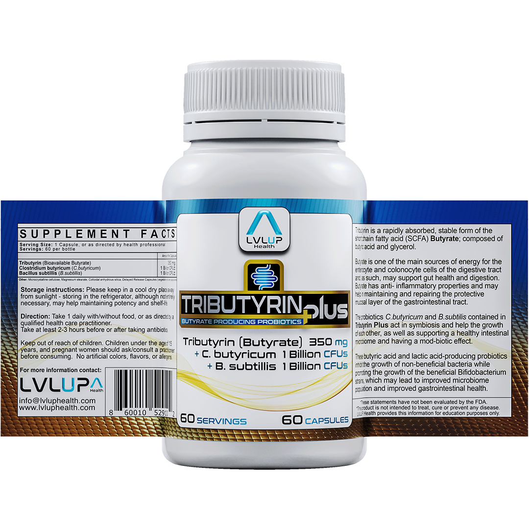 Elevate your gastrointestinal health with Tributyrin Plus, the ultimate solution for a harmonious and resilient gut microbiome.