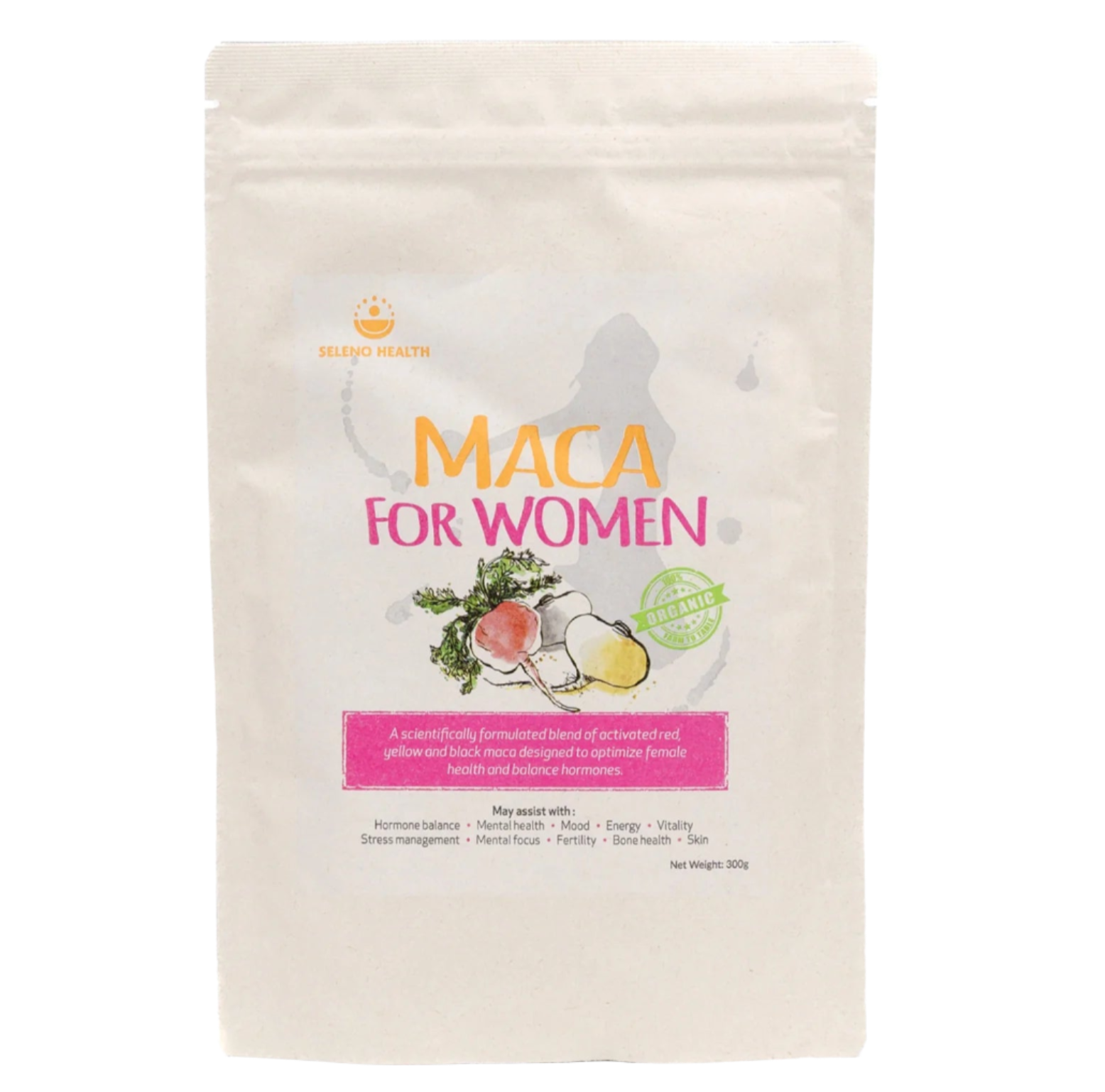 Crafted from 100% organic activated* red, yellow, and black Maca powder, scientifically formulated to optimize women's health.