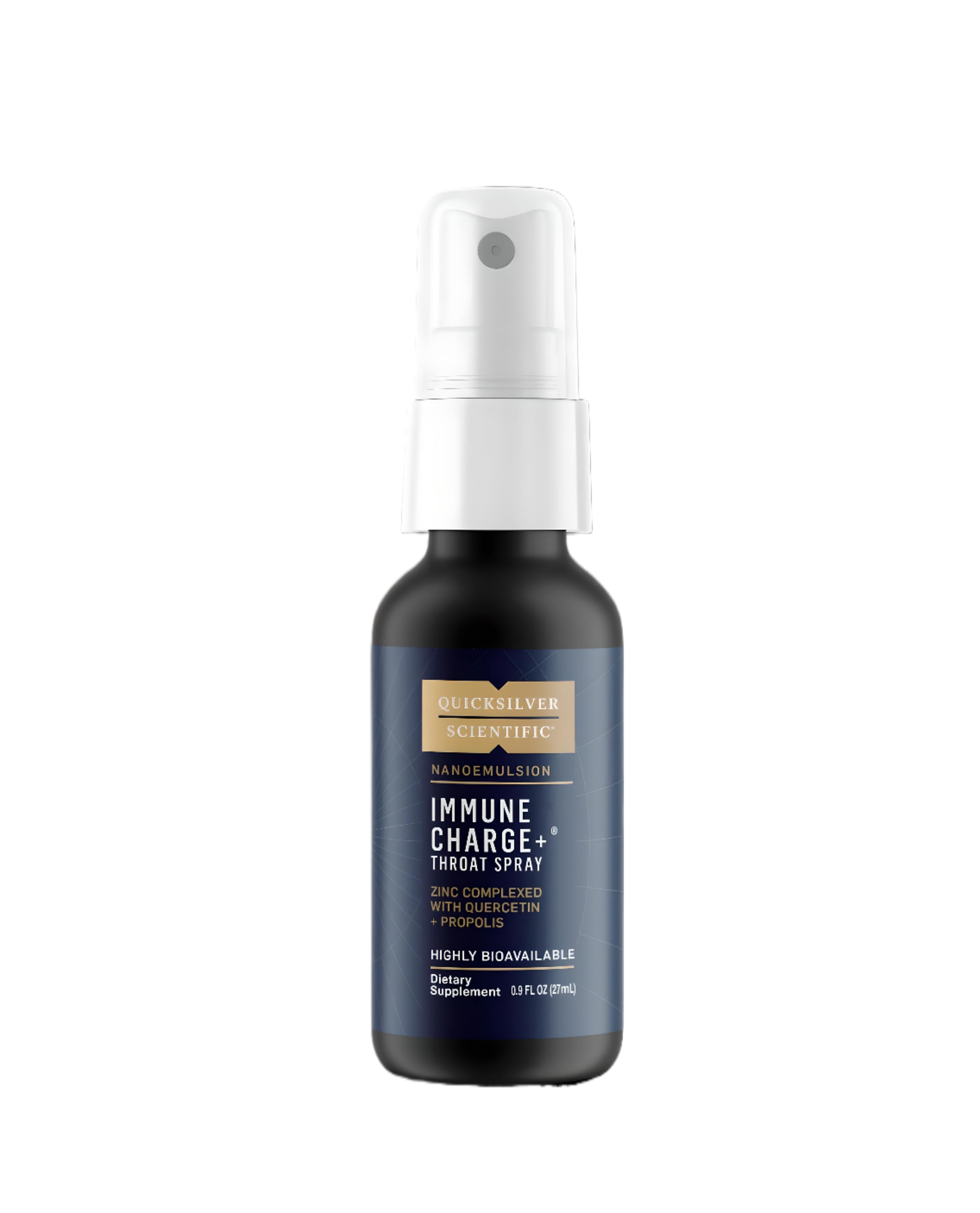 Empower your immune system with Immune Charge+ Throat Spray, a convenient and effective solution for bolstering your body's defenses against environmental challenges, brought to you by Quicksilver Science.