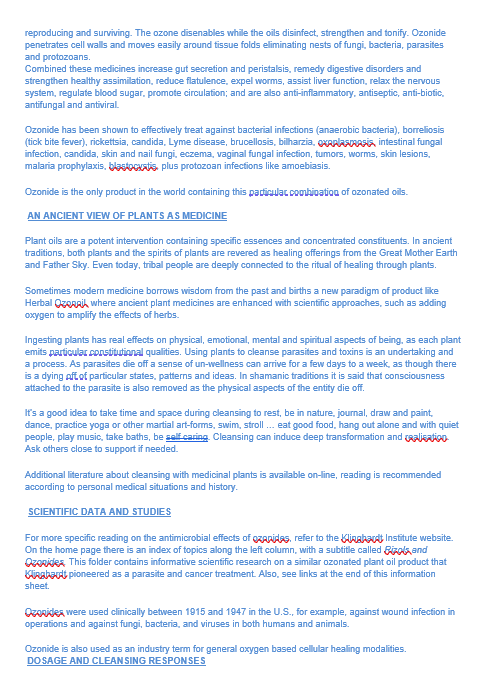 This herbal ozonated oil blend is formulated for internal use, combining traditional botanicals with oxygen-enriched oils. It is intended as a natural support option for those seeking a plant-based oil blend to complement cleansing or wellness routines.