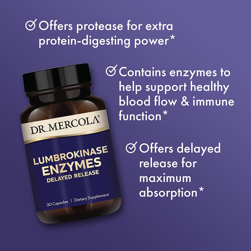 Encased within a delayed-release capsule, Dr. Mercola's formulation ensures the unfettered journey of these enzymes to your intestines, guaranteeing optimal absorption and efficacy. Additionally, they've fortified Lumbrokinase Enzymes with Protease, amplifying its protein-dissolving prowess and augmenting the actions of lumbrokinase.
