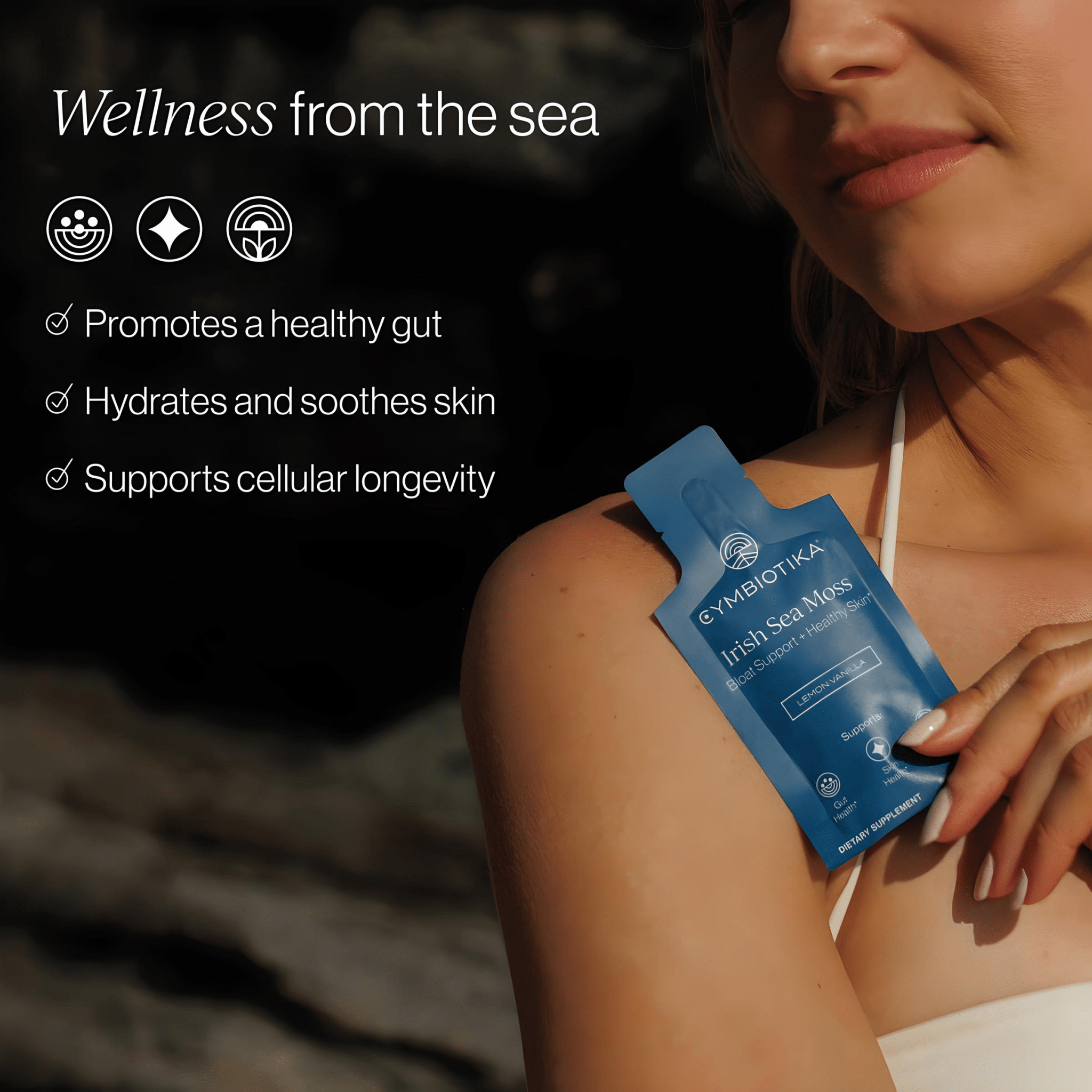 Cymbiotika's Irish Sea Moss is a powerful, bioavailable formula designed to nourish the body from the inside out. Combining wild-harvested Irish Sea Moss with advanced nutrients like Rejen fulvic minerals, Tribiome postbiotics, organic inner leaf aloe vera, and prebiotics, this innovative blend supports gut integrity, radiant skin, hormonal harmony, and cellular energy.
