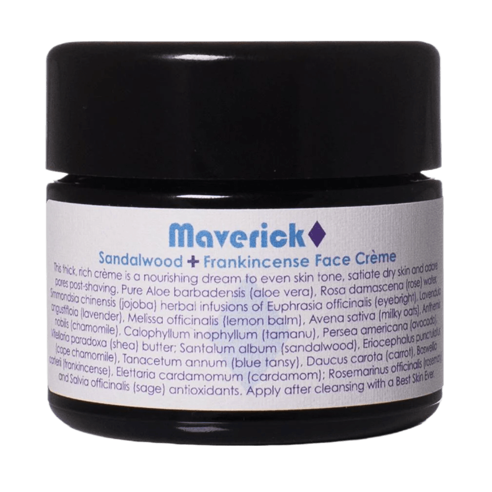 Living Libations Maverick Face Creme is a friend to faces that love a thick and wholesome cream to even skin tone and nourish pores after cleansing and shaving. Let this renegade-creme make your skin its cause.
