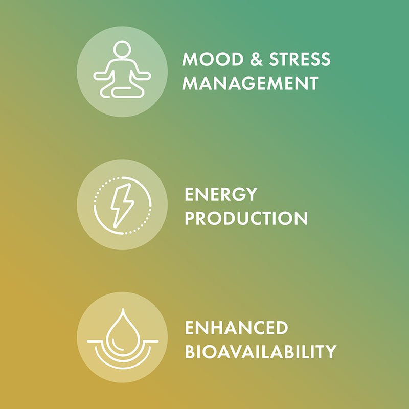 - Patented PANMOL® Vitamin B Complex: Concentrated B vitamins derived from sprouts of organic quinoa seeds, offering higher concentrations than whole grains.