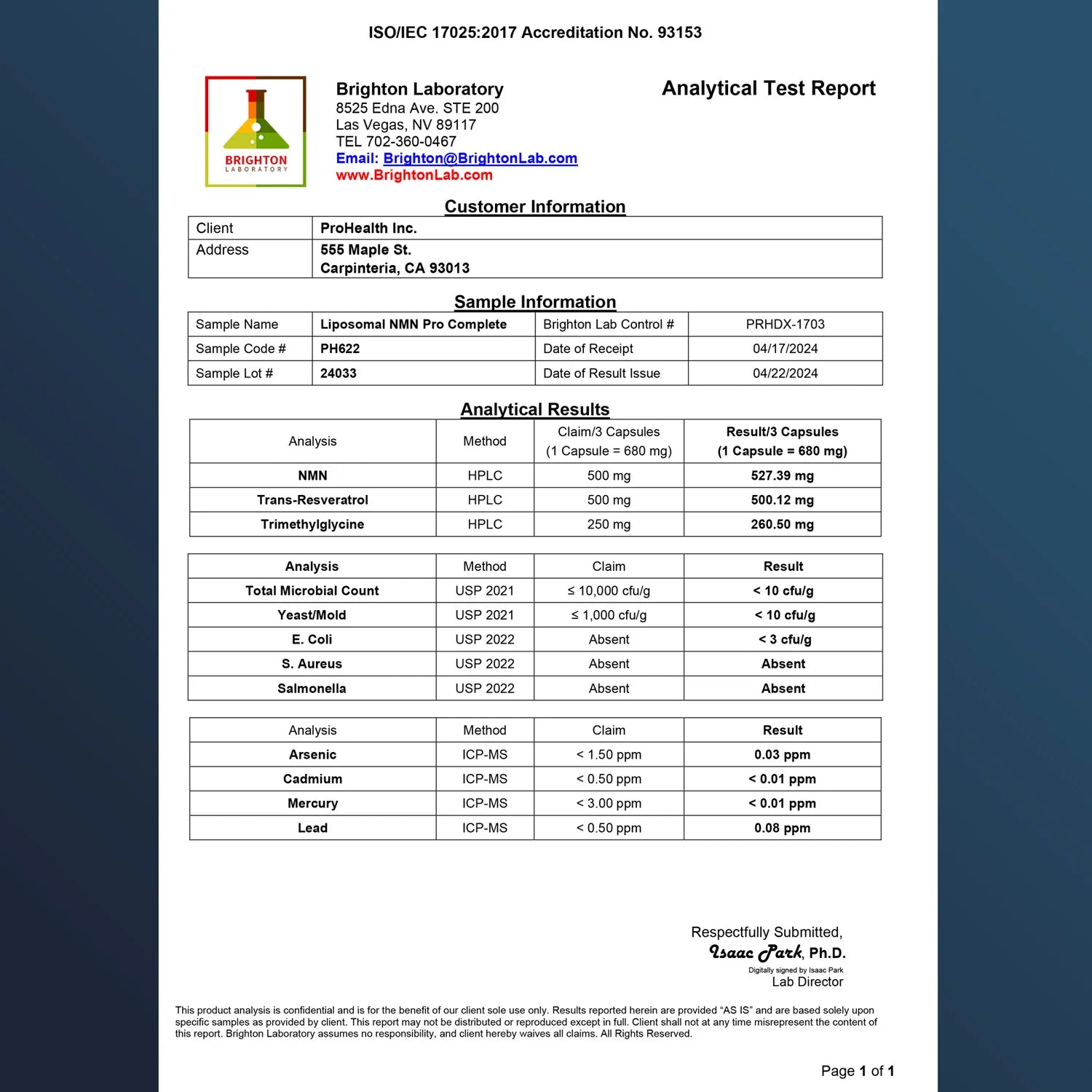 ProHealth Longevity Liposomal NMN Pro Complete 90 Capsules