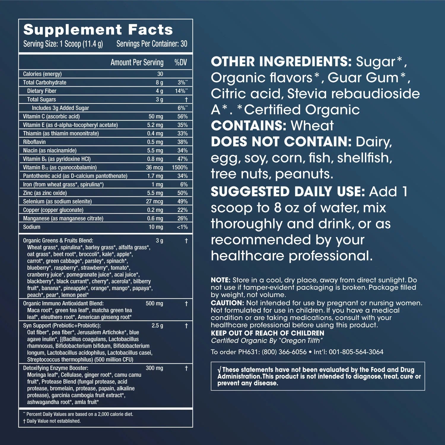 Immune Support: With wheatgrass, broccoli, green tea, parsley, and eleuthero root to activate immune cells and reduce inflammation.