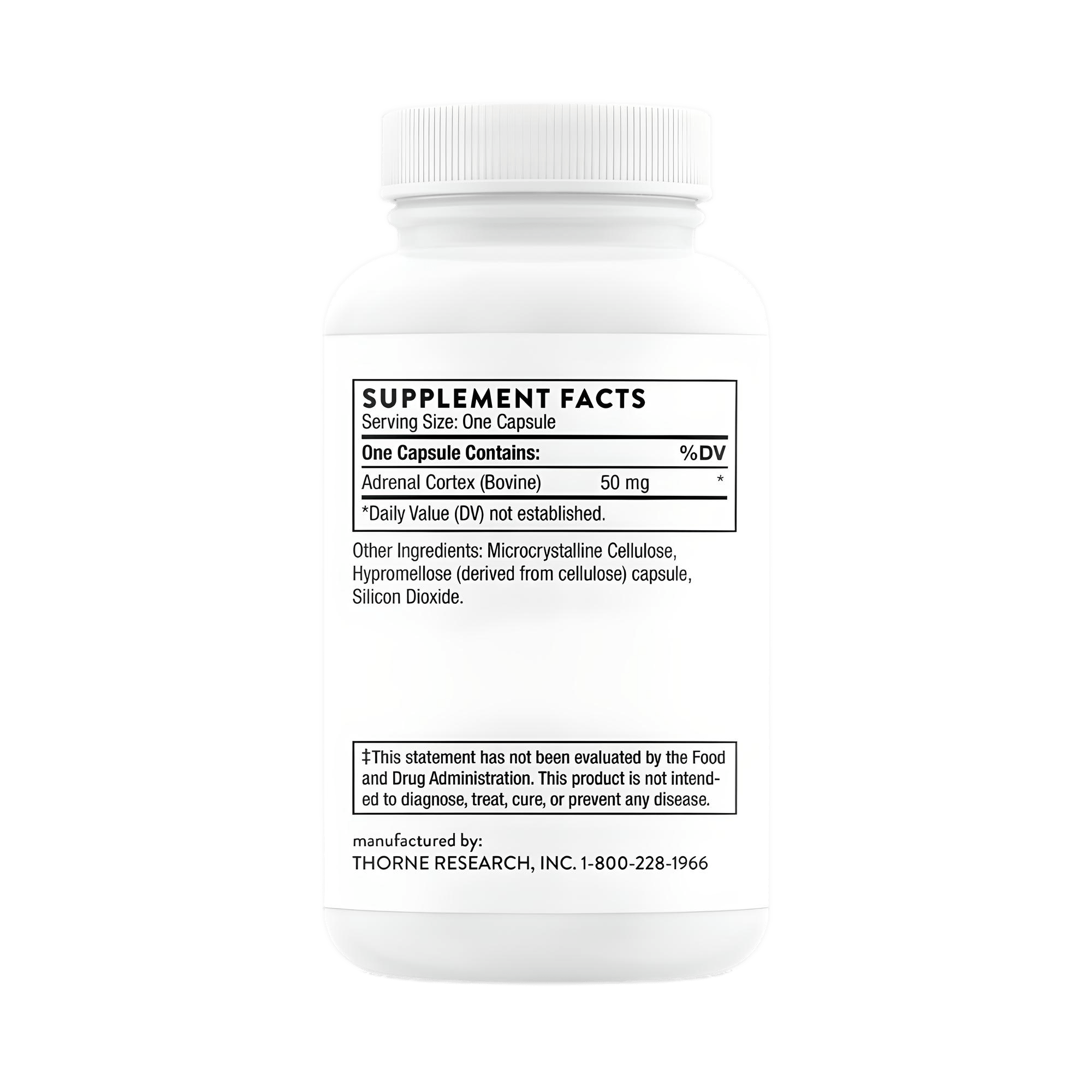 Thorne Adrenal Cortex delivers a single-ingredient bovine adrenal cortex extract in capsule form, intended to support your body’s natural adrenal function. It provides a clean formula with minimal excipients, suitable for those seeking targeted glandular support.