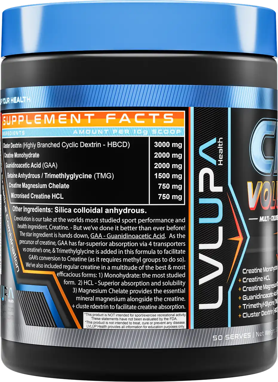Crevolution is a next-generation creatine supplement engineered for athletes and high performers seeking superior strength, recovery, and endurance. This scientifically formulated blend combines three advanced forms of creatine with powerful absorption enhancers and synergistic compounds that support both muscular and cognitive performance.