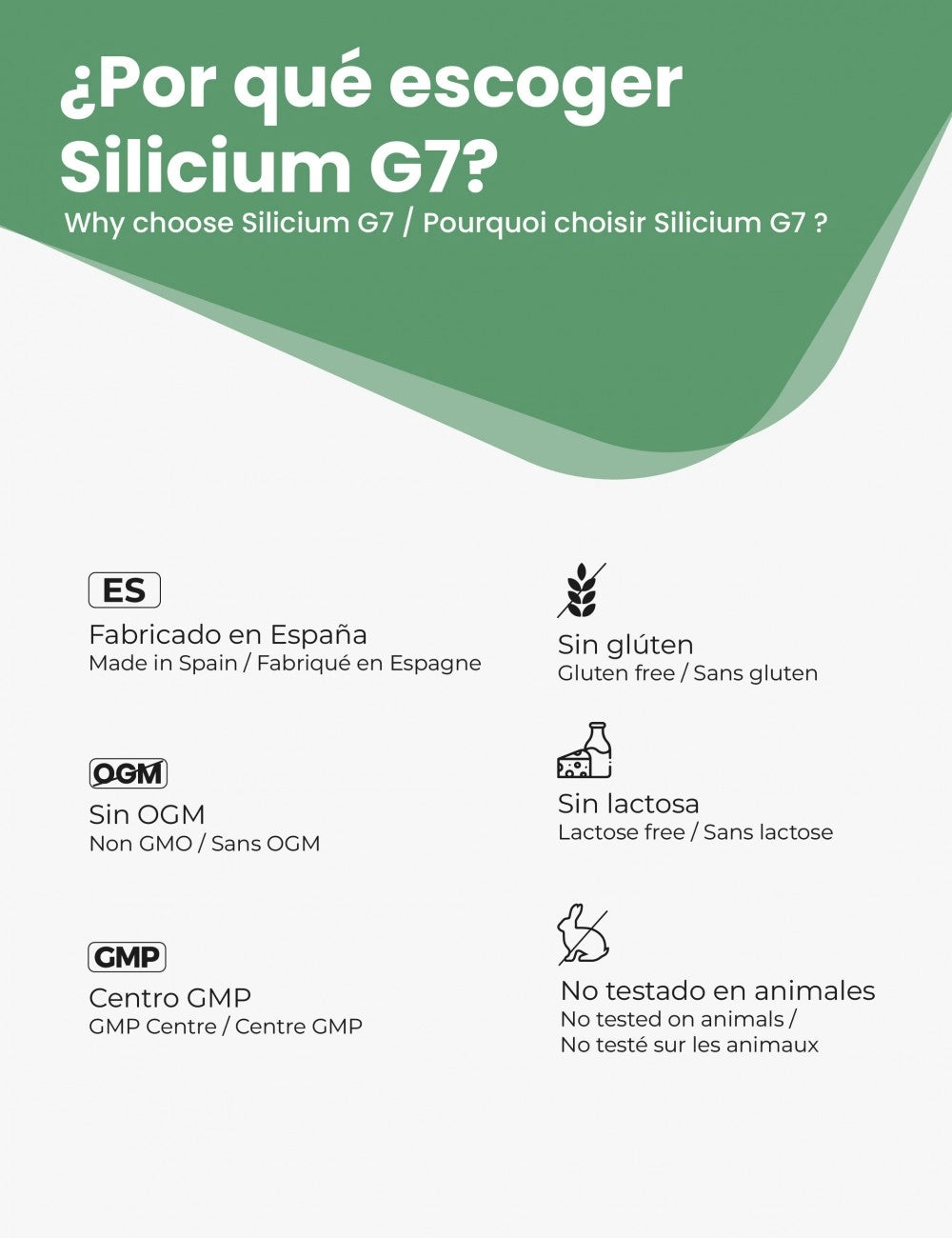 Silicium G7 Gel is a fast-absorbing, non-greasy topical formula designed for daily use on joints, muscles, and delicate skin. Featuring a high concentration of organic silica (2,500 mg/L) and enriched with Vitamin E, this advanced gel helps support mobility, soothe physical tension, and restore skin comfort.