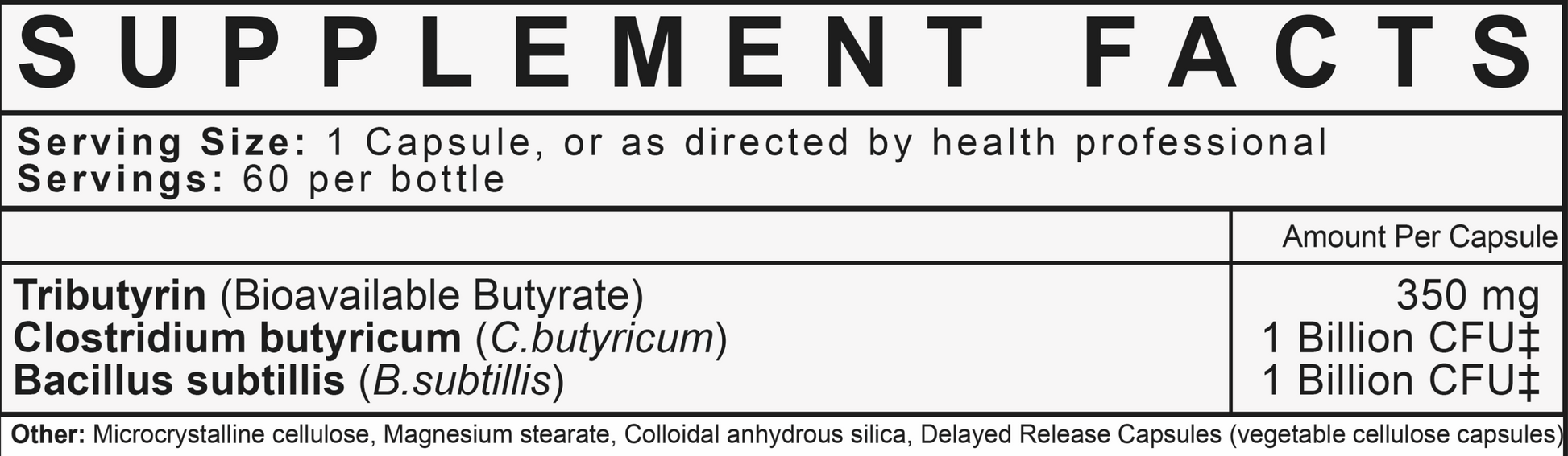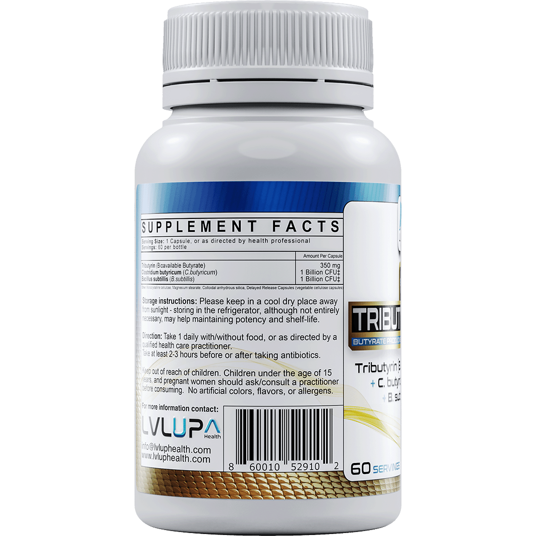 LVLUP Health Tributyrin Plus combines a stable form of tributyrin with carefully selected probiotic strains to deliver a gut-supportive supplement in capsule form. It is designed to contribute to digestive balance, microbial harmony, and intestinal integrity as part of a wellness routine.
