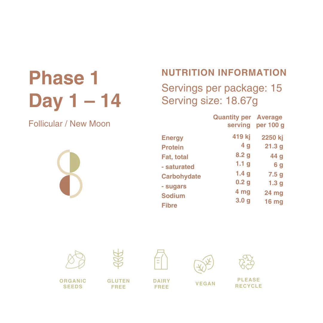 The Seed Cycle 1 Month Pack is a natural nutrition system designed to support healthy hormonal rhythms by rotating specific seed blends throughout the menstrual cycle. It provides convenient, pre‑measured, organically sourced seed blends that can easily be added to foods or smoothies.